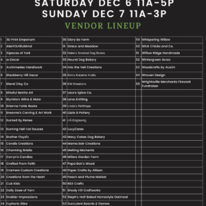 Christmas Market:  Sat.  December 6th, 11a-5p and Sun. December 7th, 11a-3p