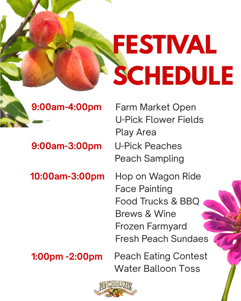 - Wagon rides, music, peach sampling, wine sampling and activities ongoing throughout festival